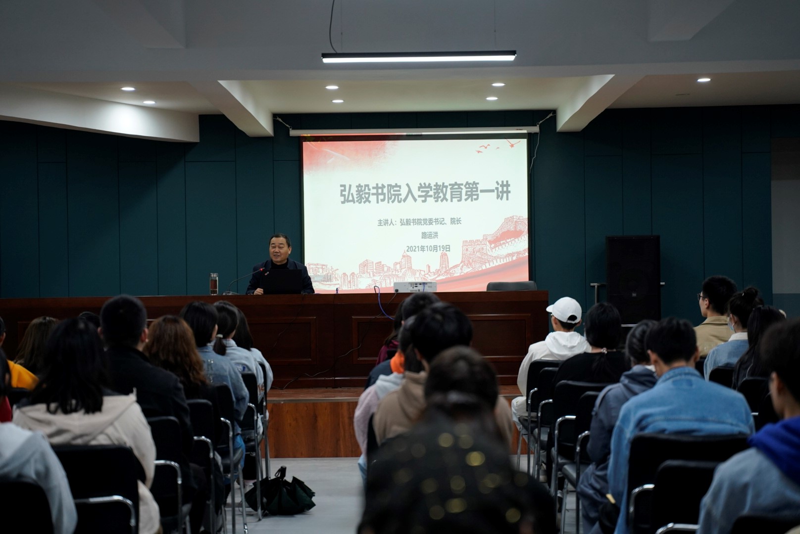 路运洪书记从许昌人文历史谈起,向大家介绍了作为华夏文化的重要发祥地,中原城市群、中原经济区核心城市之一的许昌,其经济、政治、文化、生态建设等情况;介绍了作为许昌市唯一一所省属全日制普通本科院校许昌学院的发展历程,办学条件等,增进了新生对许昌学院的认同感、归属感。他详细介绍了弘毅书院的育人模式,弘毅书院与专业学院的区别,弘毅书院与国际教育学院的联系,介绍了在全省书院制育人模式改革趋势下我校的创新做法。