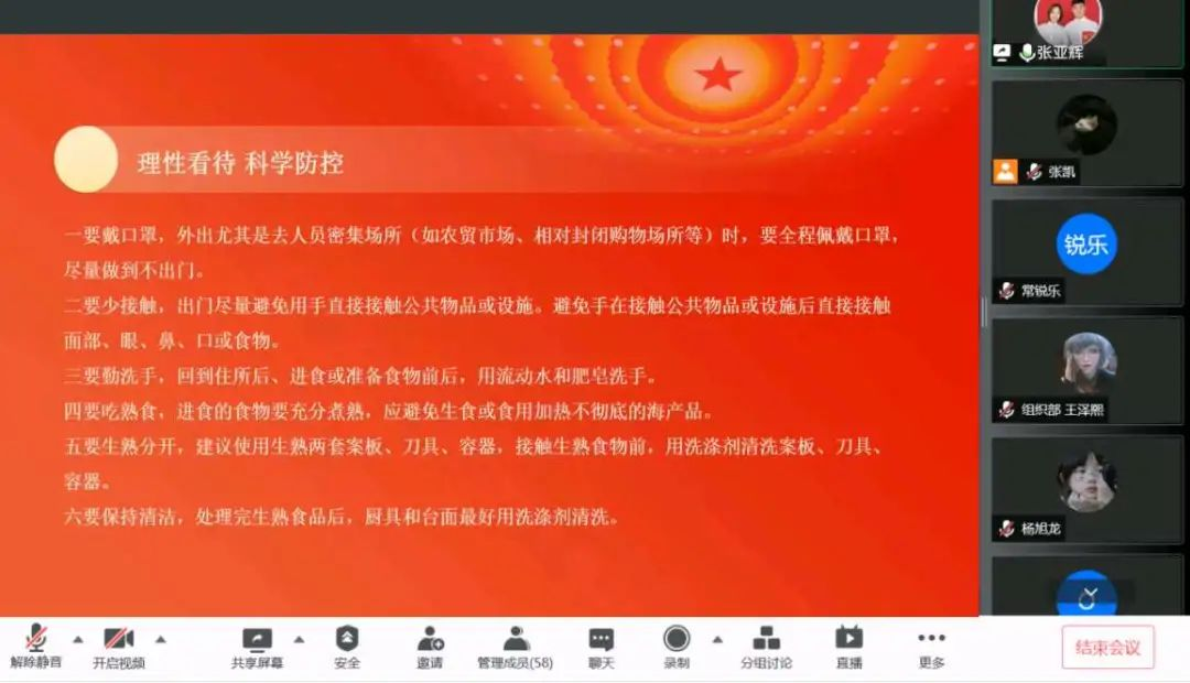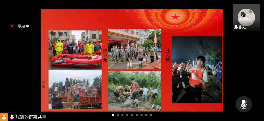 最后,团委副书记张亚辉在总结讲话中对我院青年学子在防汛救灾和疫情防控中展现出的勇于担当、迎难而上、冲锋向前、无私奉献的精神给予了充分肯定和赞扬,同时对同学们提出了三个要求:一是要有战胜灾难的信心和决心,因为党和国家始终把人民群众生命安全放在第一位,“一方有难、八方支援”“团结互助、共克时艰”是中华民族传统美德;二是要有战胜灾难的能力,学会自救和灾后防疫知识,并学以致用;三是要有战胜灾难的行动,学会理解、感恩,作为新时代青年要勇立潮头,争做时代先锋。