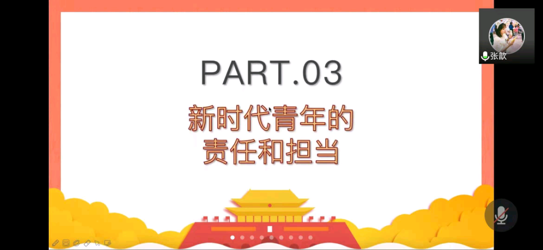 思政课上,邀请到了辅导员代表张蕾老师、张歆老师做了专题报告;学生代表张凯、张勋、谷兴科、孔志博、王泽熙、张芷涵依次做了主题发言。