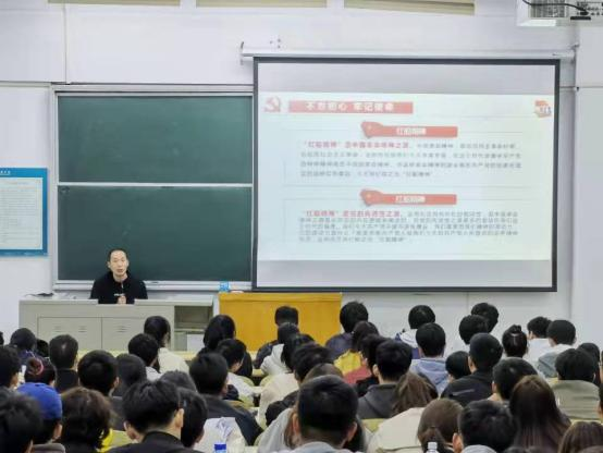 程霖老师以“红色诗词忆初心,矢志不渝担使命”为主题,回顾中国共产党人艰苦奋斗的岁月,激励同学们不忘初心、躬行践履,向先辈学习,接好实现中华民族伟大复兴的交接棒,主动成为承担历史伟任的时代新人。