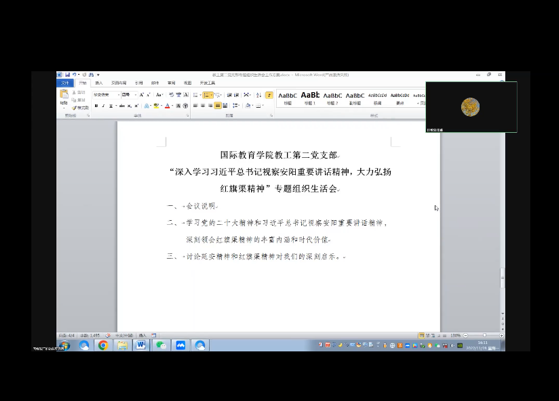按照中共河南省委教育工委《关于以“深入学习习近平总书记视察安阳重要讲话精神,大力弘扬红旗渠精神”为主题召开专题组织生活会的通知》(豫教工委〔2022〕136 号)以及校党组〔2022〕20 号文件精神,11月28日下午,国际教育学院教工第二党支部通过腾讯会议的形式召开了线上专题组织生活会,全体支部党员参加了会议。
