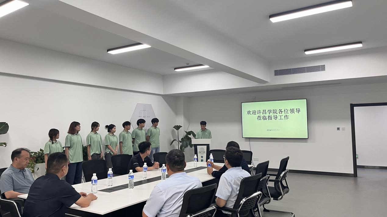 2024年7月7日下午,许昌学院校党委副书记孙海,宣传部部长王林、学生处处长周银超、团委副书记郗磊磊等一行来到国家电网新乡供电公司,看望我院“应急防汛,电网先行”暑期社会实践队并开展座谈、沉浸式参与实践项目。国家电网新乡供电公司工作人员对许昌学院领导的到来表示热情欢迎,并就社会实践项目的具体内容进行深入交流。