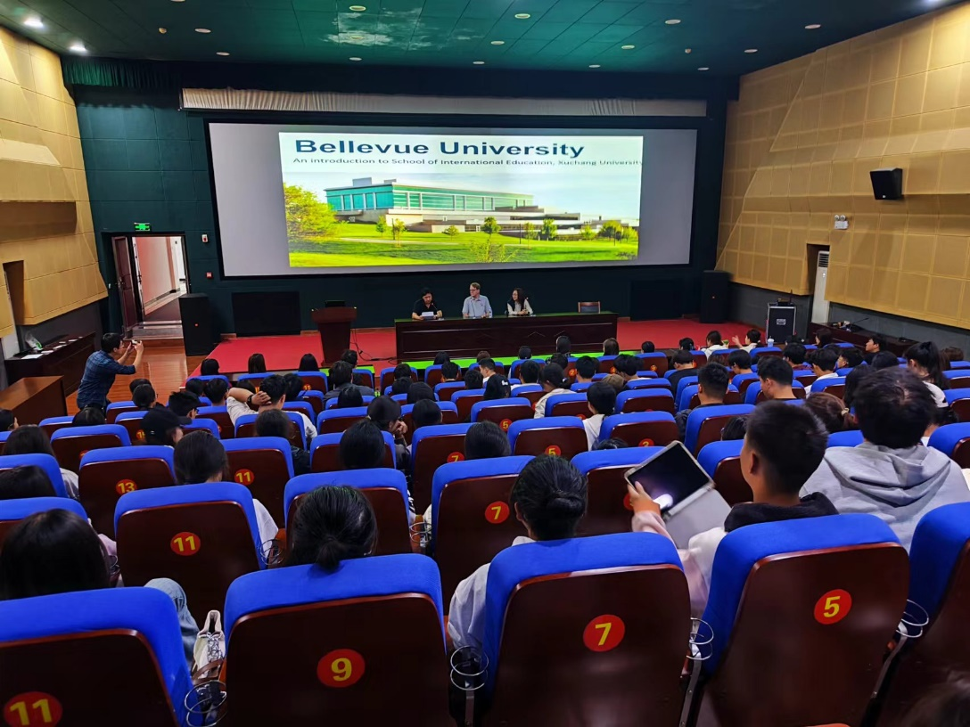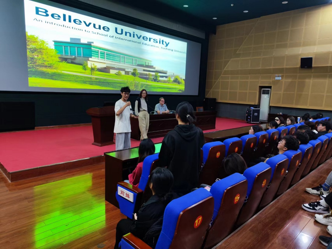 会上美国贝尔维尤大学国际处处长Julie Verebely、美国贝尔维尤大学商学院物流项目负责人Rick Pennington和参加2024年春季交换生项目的学生分别介绍了贝尔维尤大学的办学条件、校园文化和学习环境等,并对2024级新生提出的问题一一进行了耐心解答,并肯定了我校新生扎实的英文功底,鼓励有志学生在本科期间走出去获取美方学位。