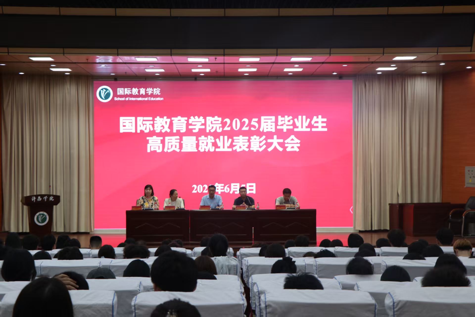 6月5日,国际教育学院于图书馆二楼学术报告厅举办2025届毕业生高质量就业表彰大会,对在就业升学中表现突出的学生代表予以表彰。学院党委书记钱明智、院长范丽波、副院长杨枝茂,以及多名教师代表、各级学生代表共同出席会议,招生就业处副处长许庆贺受邀参会,会议由党委副书记王慧婉主持。