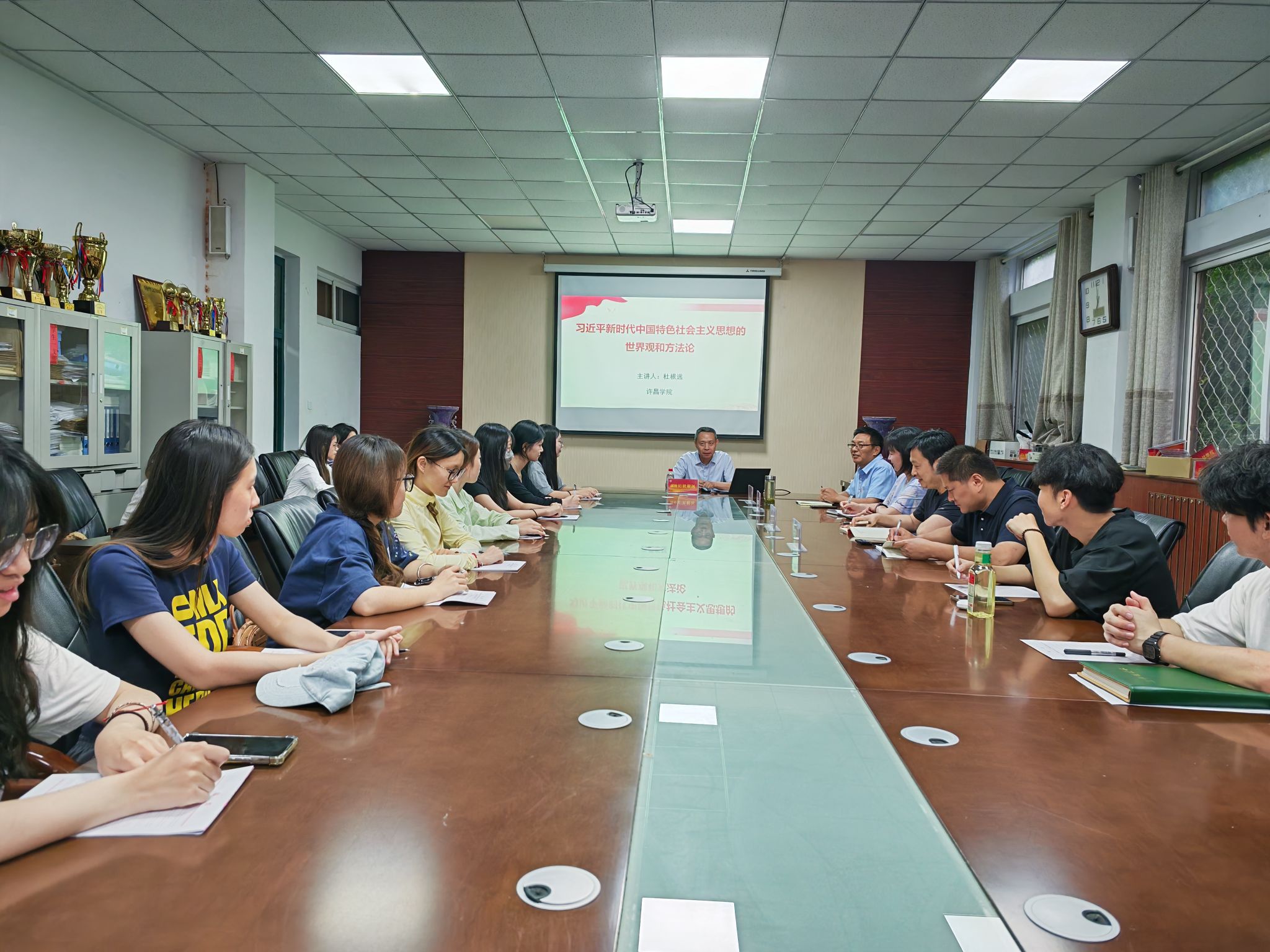 6月23日下午,许昌学院副校长杜根远为国际教育学院师生作题为“习近平新时代中国特色社会主义思想的世界观和方法论”的专题报告。学院领导班子成员、学生党员及入党积极分子代表参加学习,会议由国际教育学院党委书记钱明智主持。