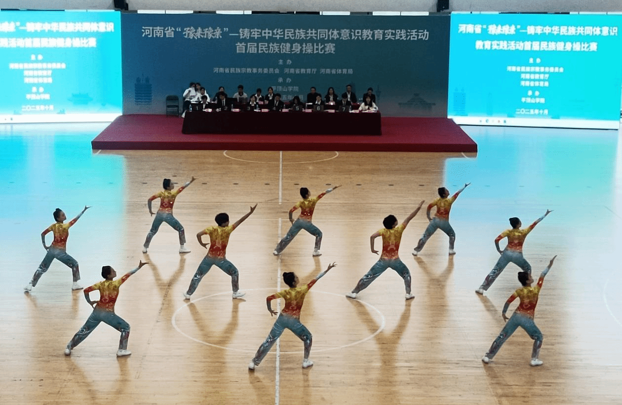 10月17日至19日,由河南省宗教事务委员会、河南省教育厅、河南省体育局联合主办的河南省首届“豫来豫亲”—民族健身操比赛在平顶山学院举行。我院代表队在比赛中表现优异,荣获本科高校组规定套路三等奖,学生郑沛函获得“优秀运动员”荣誉称号。