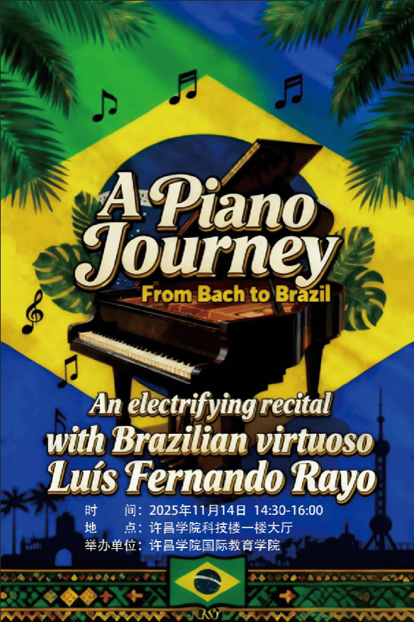 11月14日下午,我院中外合作办学项目外籍教师Luís Fernando Rayo博士独奏音乐会在许昌大学科技园一楼隆重举办。本次音乐会由国际教育学院主办、许昌大学科技园承办。国际教育学院院长范丽波、许昌大学科技园发展有限责任公司总经理王豪、宣传部副部长申璐莹、国际教育学院副书记王慧婉、副院长陈豪、杨枝茂及国际教育学院2024、2025级(中美)舞蹈专业学生观看了此次音乐会。