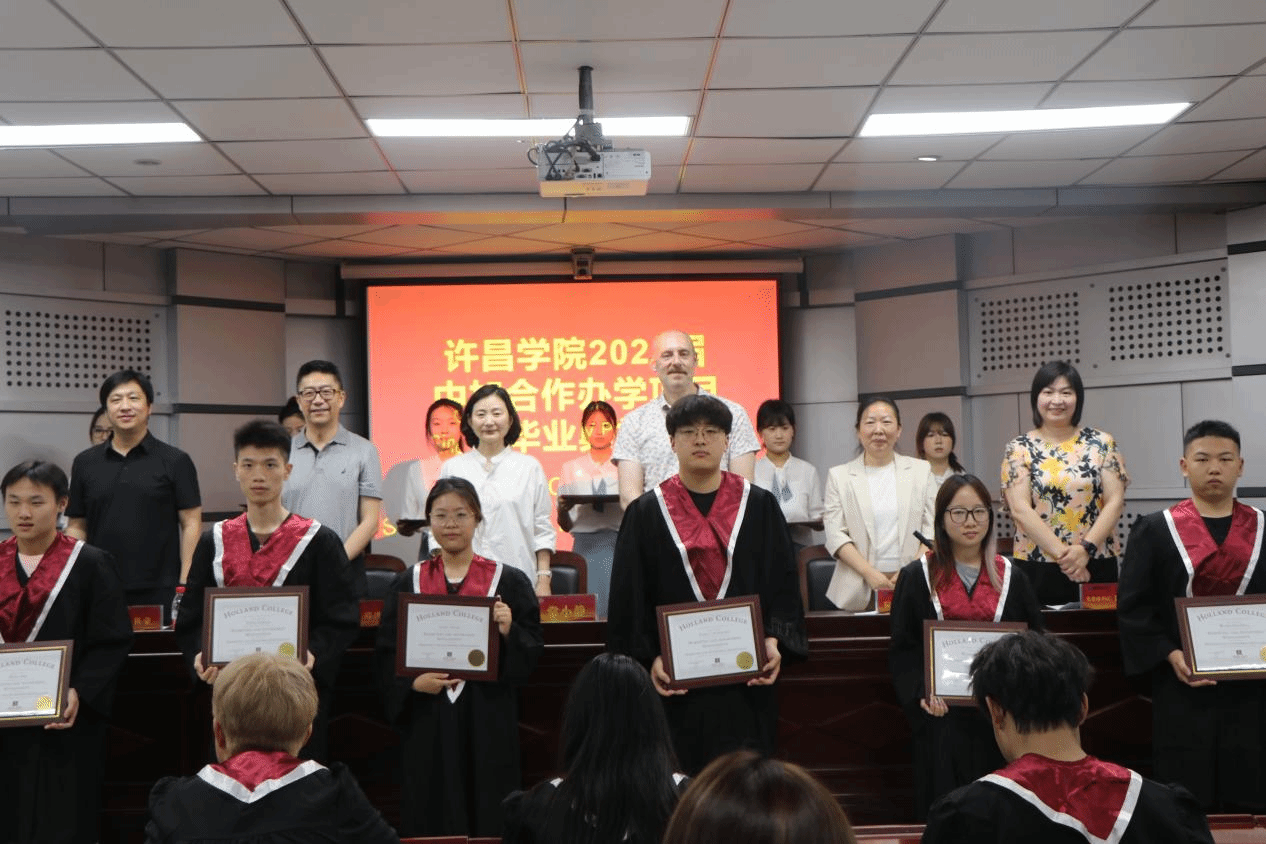 2025年6月5日上午,国际教育学院在办公楼第三会议室成功举办了2025届(中加)市场营销专业毕业典礼。加拿大荷兰学院教务长Craig Dauphinee和国际合作部经理Qiu Hongtao先生、许昌学院国际交流合作处处长常小静、中外教师代表及2025届(中加)市场营销专业的33名毕业生参加了此次毕业典礼。典礼由许昌学院国际教育学院院长范丽波教授主持。