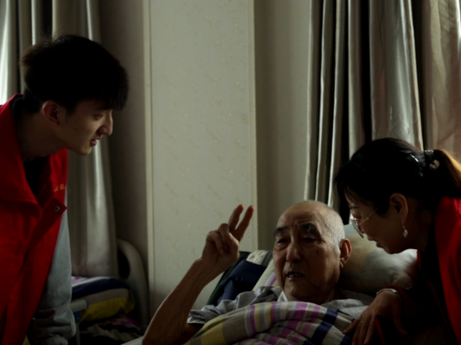 告别了李英豪老人,志愿者们又去拜访了开国老兵刘振南老人。今年已经90岁了,说话虽有点不清楚,但讲起以前的军旅生活时老人却变得十分激动。他曾经作为空军参加了抗美援朝战争,是一位受人尊敬的功臣。虽然说话不清楚但一直在鼓励着我们,说着:“毛主席好,当兵好,共产党好,新中国好。”老人的家人说:“老爷子已经很长时间没有这么高兴,说这么多话了。”志愿者们也都把老人的期许牢牢地记在心中。