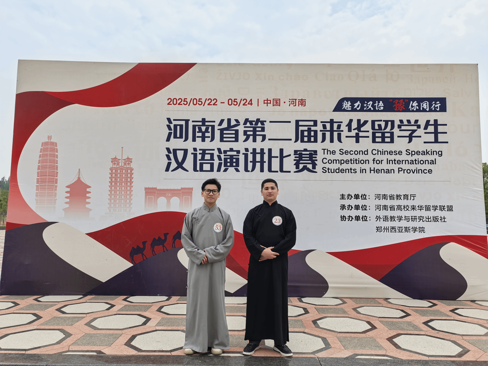 2025年5月22日至5月24日,由河南省教育厅主办的河南省第二届“魅力汉语,‘豫’你同行”来华留学生汉语演讲比赛在郑州西亚斯学院隆重举行,旨在推动在豫来华留学生的汉语学习与文化交流,增进国际学生对河南文化和中华文明的深入了解,进一步促进汉语和中华文化的国际传播。比赛吸引了省内31所院校共76名来华留学生的踊跃参与,我校选派越南籍留学生梅黄棣同学(MAI HOANG DE)和塔吉克斯坦籍留学生欧麦尔(SAIDZODA UMARALI)参赛,国际教育学院留学生管理科副科长程艺苑老师、学工办副主任朱青老师陪同指导。两名同学均发挥出色,取得优异成绩,荣获三等奖。